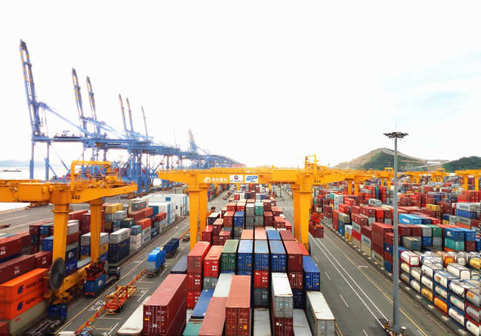 軌道吊作業(yè)中,釜山新港一道亮麗的風(fēng)景