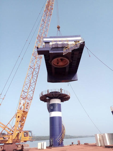 幾內(nèi)亞當(dāng)?shù)貢r(shí)間4月5日上午,M27B項(xiàng)目55噸固定吊的最大、最重結(jié)構(gòu)件——轉(zhuǎn)盤順利吊裝完成。吊裝難點(diǎn)順利渡過,大家懸著的心總算落下了。算起來這是我們海西在非洲大陸上安裝的第13臺(tái)固定吊了。