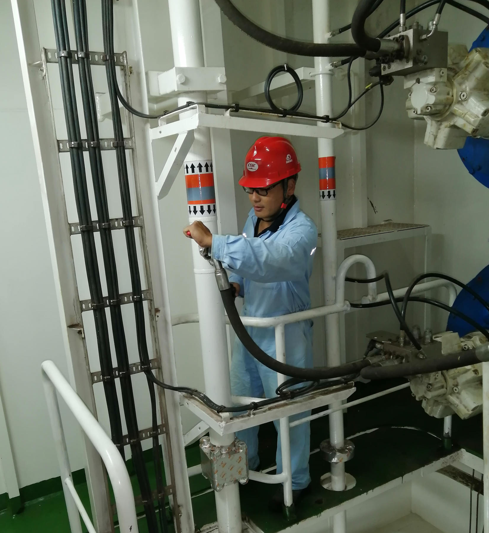 項目經(jīng)理鄭皓峰,在確定船期以后,將已經(jīng)訂好的回家機票退票。這個十一對他而言具有特別的意義,因為他要第一次去拜訪未來的岳父岳母。他不得不做出取舍,在與女朋友及家人商量后,鄭皓峰決定留下來,做好整個項目的指揮調(diào)度工作。從1號到7號,他每天都在盯現(xiàn)場,確保項目作業(yè)安全、進度可控。