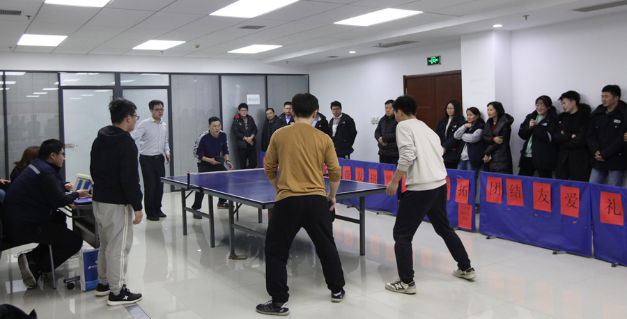 比賽分上下半?yún)^(qū)循環(huán)賽,每隊(duì)采取三局兩勝制,分為男子單打、女子單打、男女混雙、男雙、男單五組進(jìn)行團(tuán)體比賽,每組比賽采取三局兩勝十一分制。乒乓球作為我國(guó)國(guó)球,有著無可比擬的群眾基礎(chǔ),無論男女老少皆可上臺(tái)“搓幾下”。此次比賽得到了廣大員工的關(guān)注,大家紛紛到場(chǎng)為自己支持的代表隊(duì)吶喊助威。