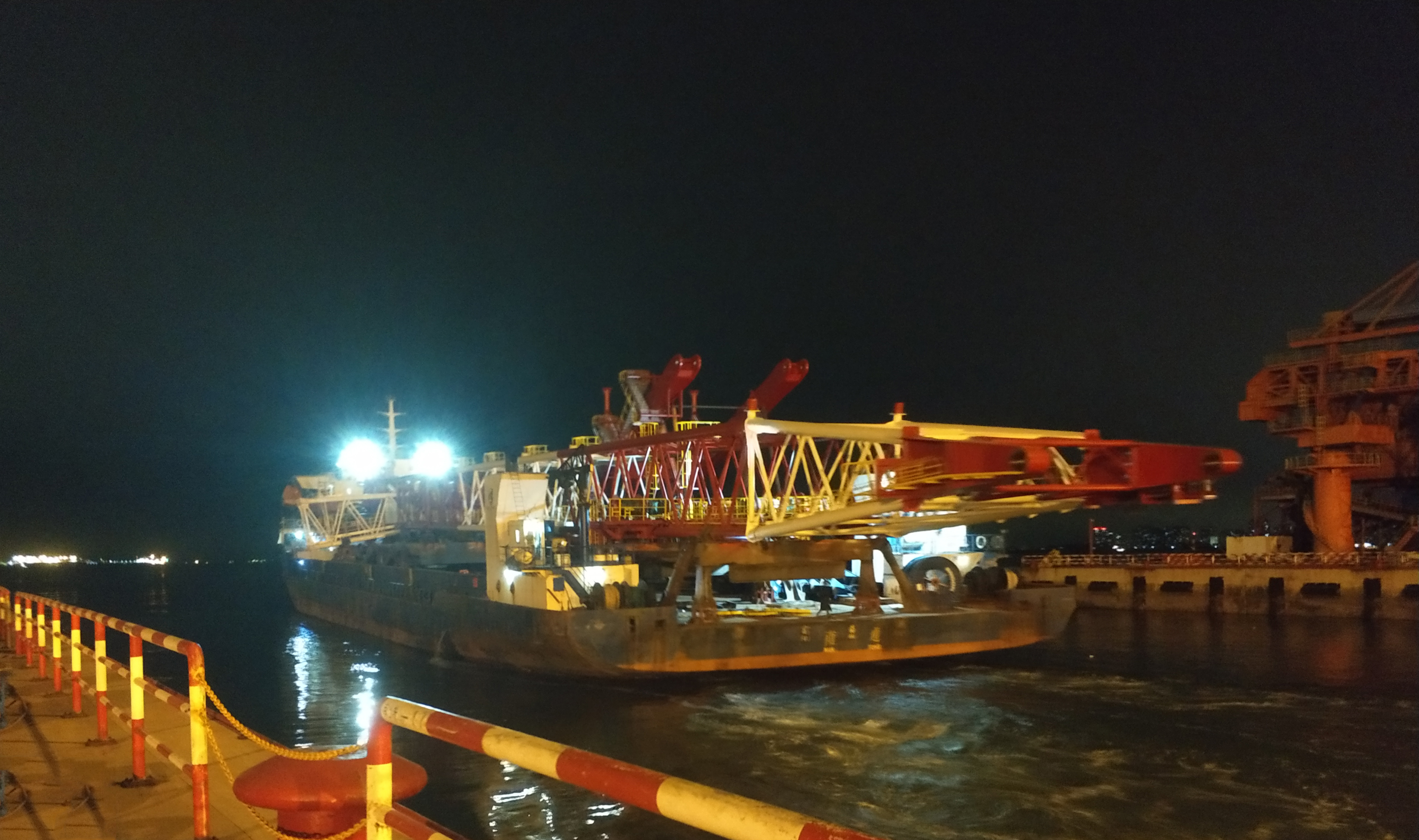 為確保項目進度,項目組堅持每天召開現(xiàn)場開碰頭會,精心安排每日計劃,積極配合指導現(xiàn)場安裝、解決現(xiàn)場問題,及時響應各項報檢計劃。10月11日運輸船到廠,項目組緊密安排吊裝計劃,10月12日晚上便完成了全部部套的吊裝上船,同時安排人員通宵加班,保障運輸船按時發(fā)運。