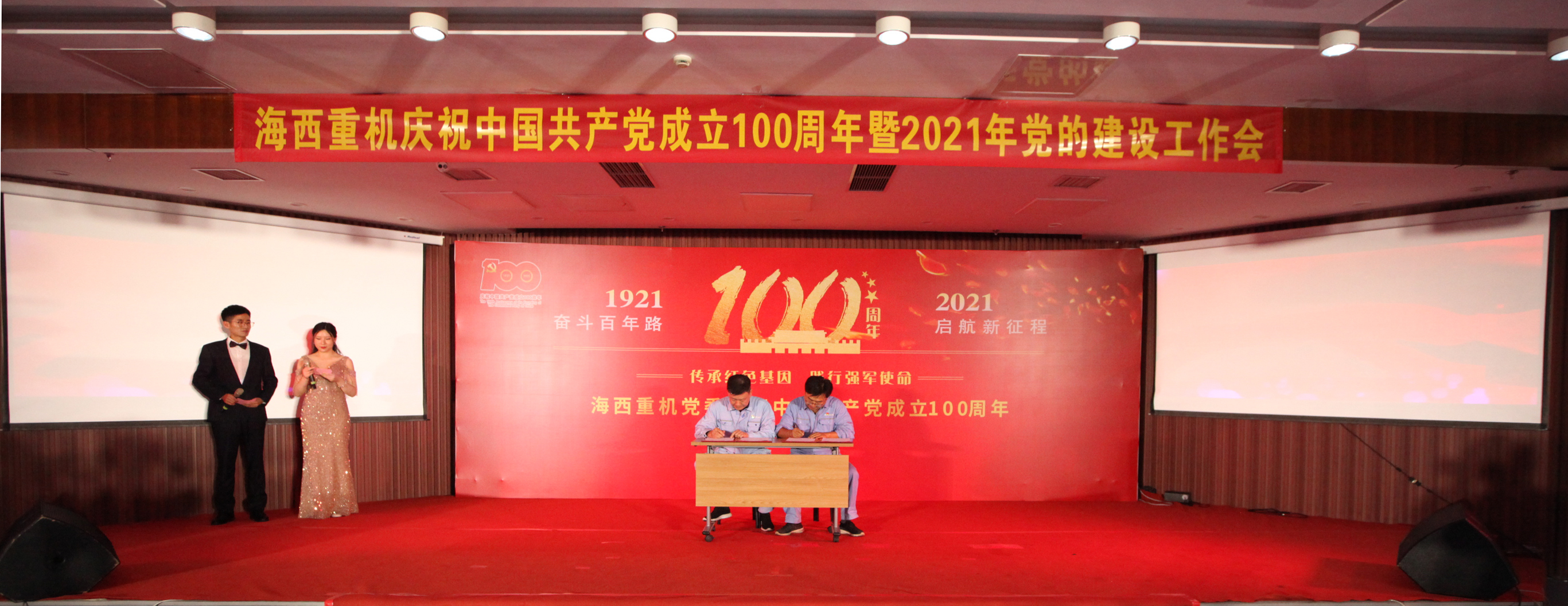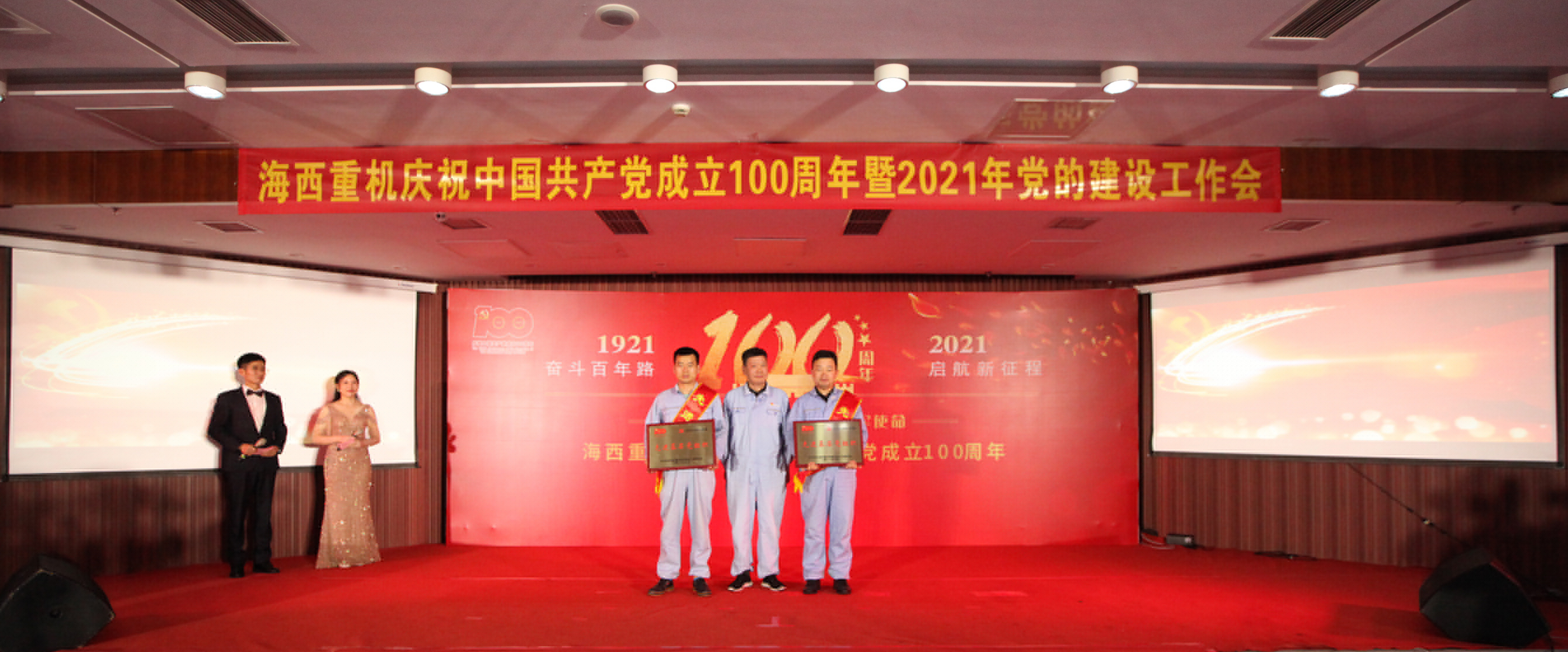 精彩紛呈的節(jié)目令在場觀眾意猶未盡。匯演告一段落后,公司黨委副書記、總經(jīng)理張懷志宣讀公司黨委關(guān)于表彰2020-2021年度“一先兩優(yōu)”和“質(zhì)量先進(jìn)”的決定,公司領(lǐng)導(dǎo)為先進(jìn)黨支部、質(zhì)量先進(jìn)班組、質(zhì)量標(biāo)兵、模范黨員頒獎并合影留念。會上簽訂了“準(zhǔn)時發(fā)運”目標(biāo)責(zé)任書。黨旗飄揚在生產(chǎn)一線,黨徽閃耀在崗位上,先進(jìn)模范們沖鋒在攻堅克難的最前線,是海西人學(xué)習(xí)的榜樣。