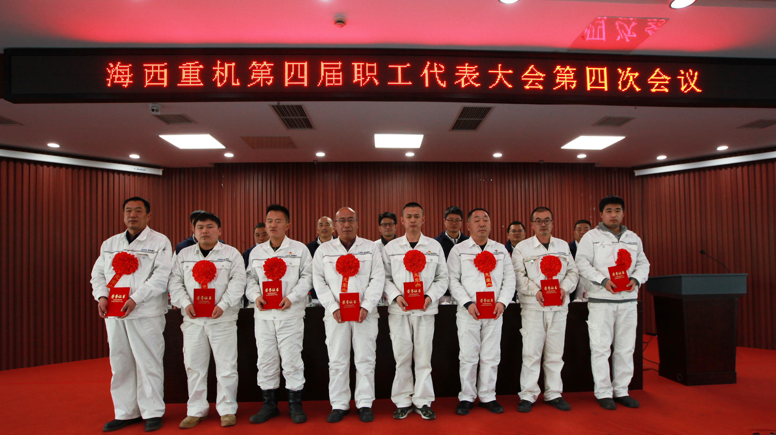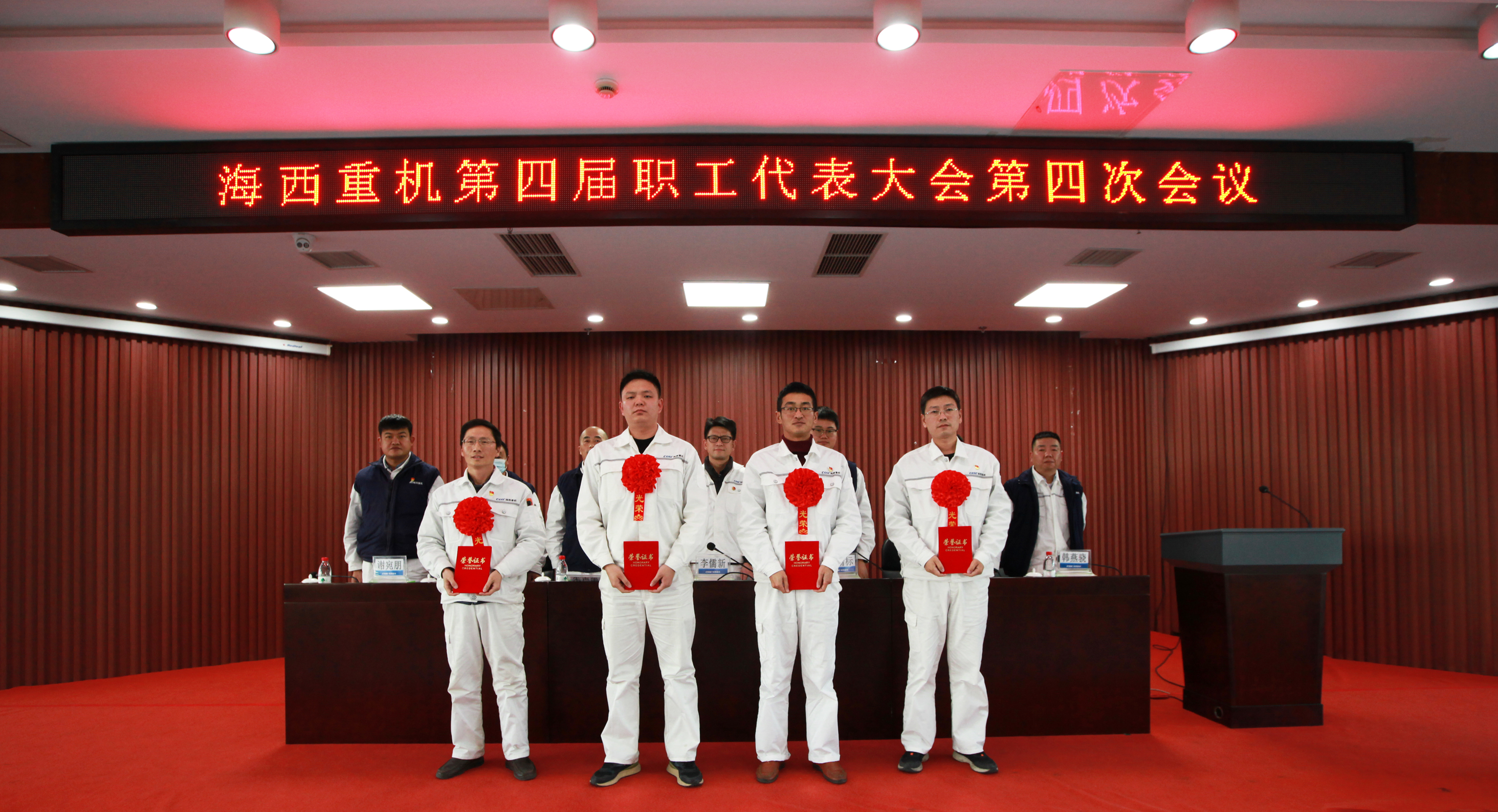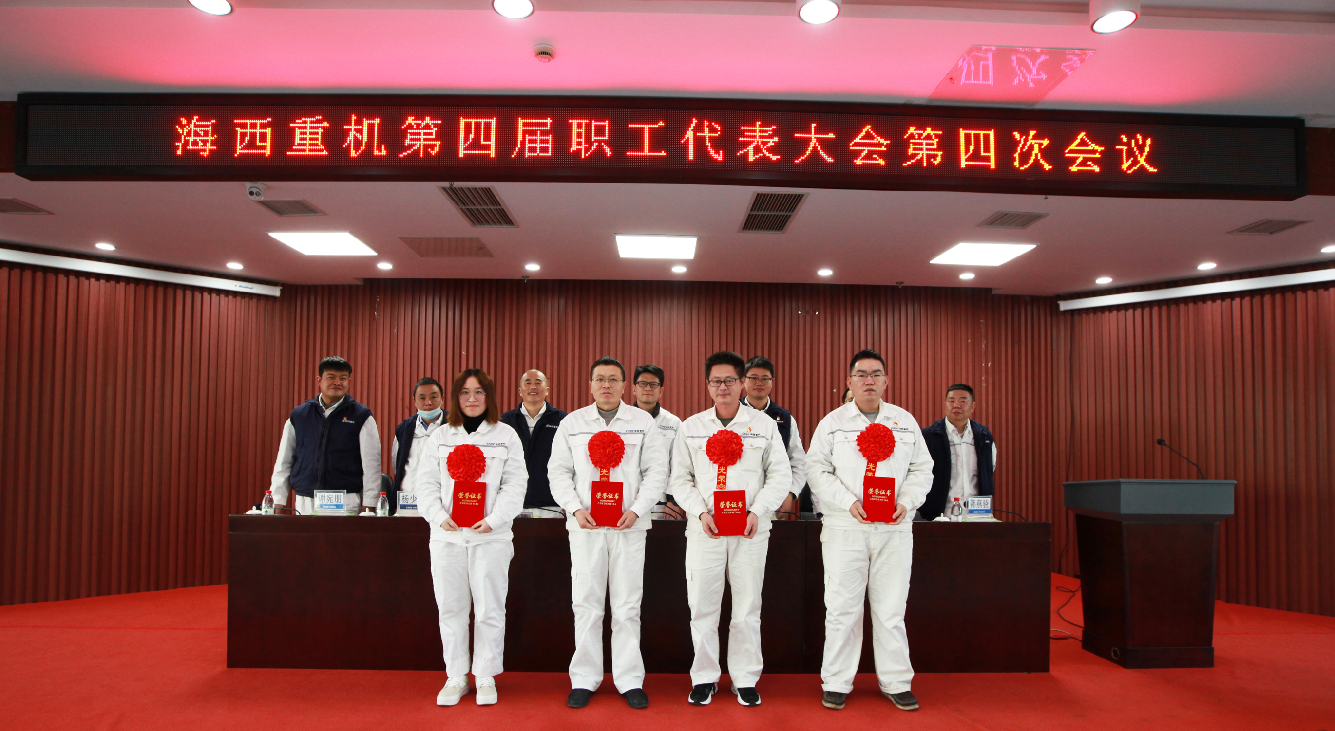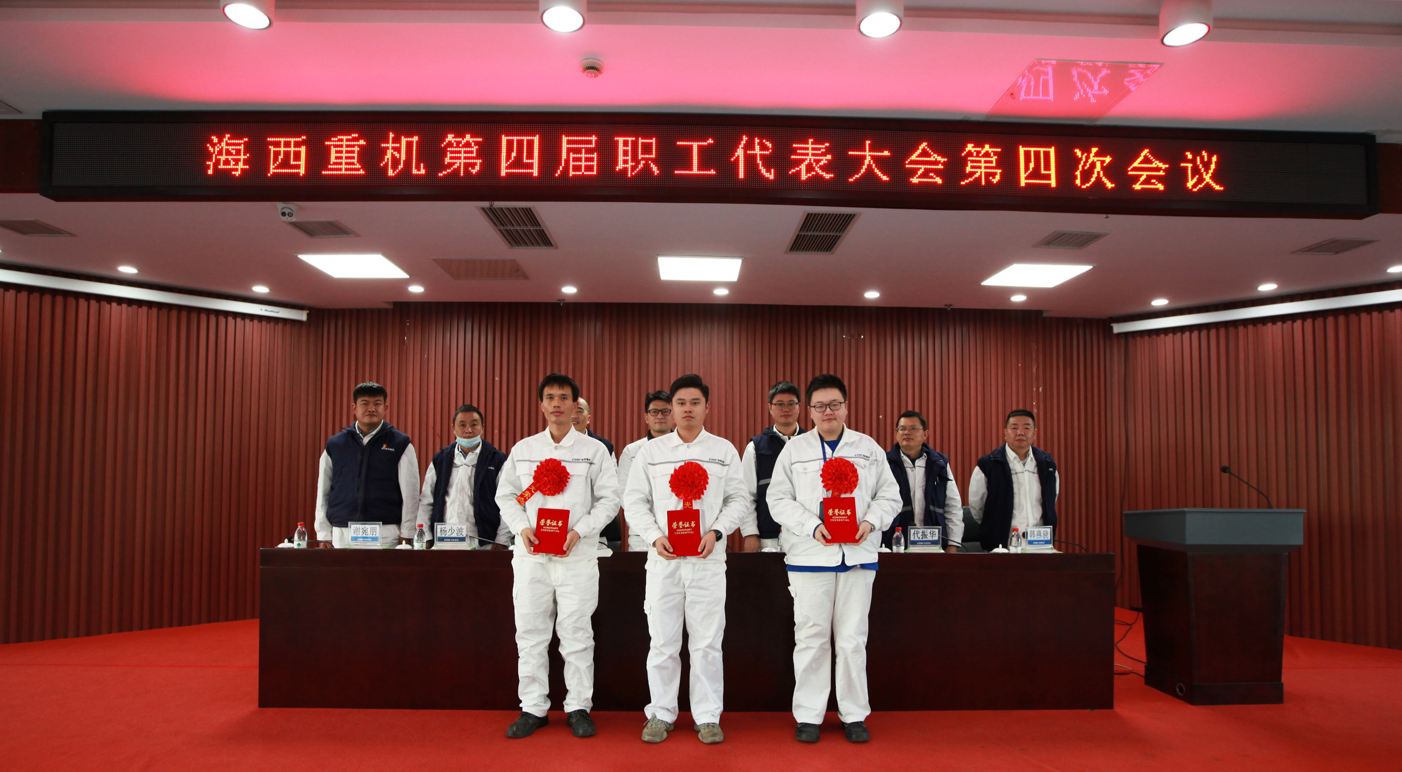 1月17日,中國船舶集團旗下武漢船機海西重機公司第四屆職工代表大會第四次會議在901會議室隆重召開。公司黨委書記、董事長李儒新,黨委副書記、總經理蔣新標,副總經理代振華、楊少波、韓燕驍、謝宛朋出席會議,黨委副書記、紀委書記、工會主席朱聲凱主持大會。