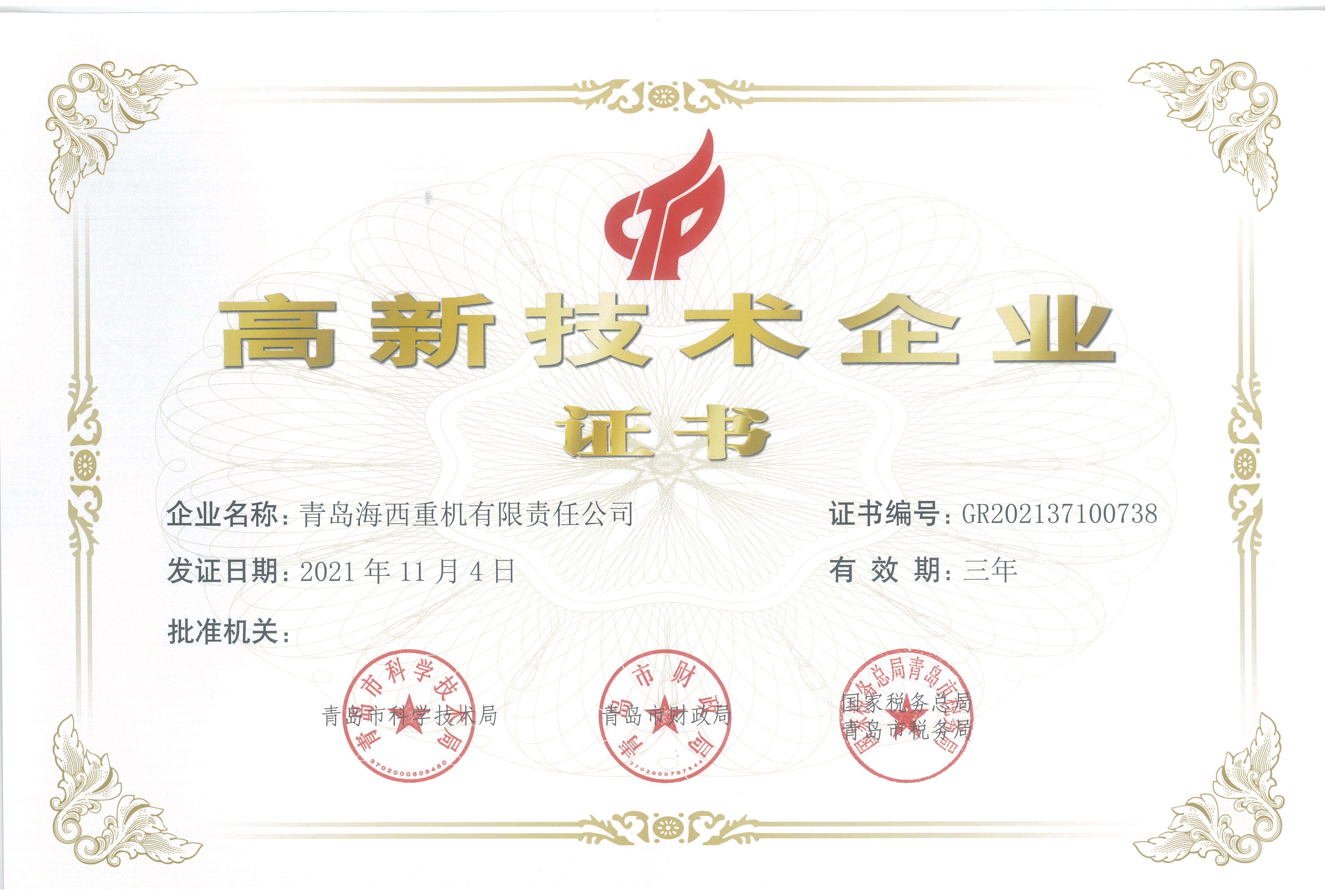 成功通過高新技術(shù)企業(yè)認(rèn)定,對(duì)于提高市場(chǎng)經(jīng)營(yíng)競(jìng)爭(zhēng)力,提升企業(yè)品牌影響力具有重要作用,是公司實(shí)力和能力的體現(xiàn)。多年來,海西重機(jī)一直堅(jiān)持突出技術(shù)引領(lǐng)戰(zhàn)略,強(qiáng)化技術(shù)創(chuàng)新,以技術(shù)創(chuàng)新帶動(dòng)高質(zhì)量發(fā)展為重點(diǎn),取得了較好成績(jī)。公司獲得了山東省首臺(tái)套技術(shù)裝備3項(xiàng)、山東精品裝備產(chǎn)品2項(xiàng)、山東創(chuàng)新工業(yè)產(chǎn)品1項(xiàng)、集團(tuán)公司科技獎(jiǎng)勵(lì)6項(xiàng),青島市科技獎(jiǎng)1項(xiàng),科技成果鑒定11項(xiàng),西海岸區(qū)級(jí)人才2人……