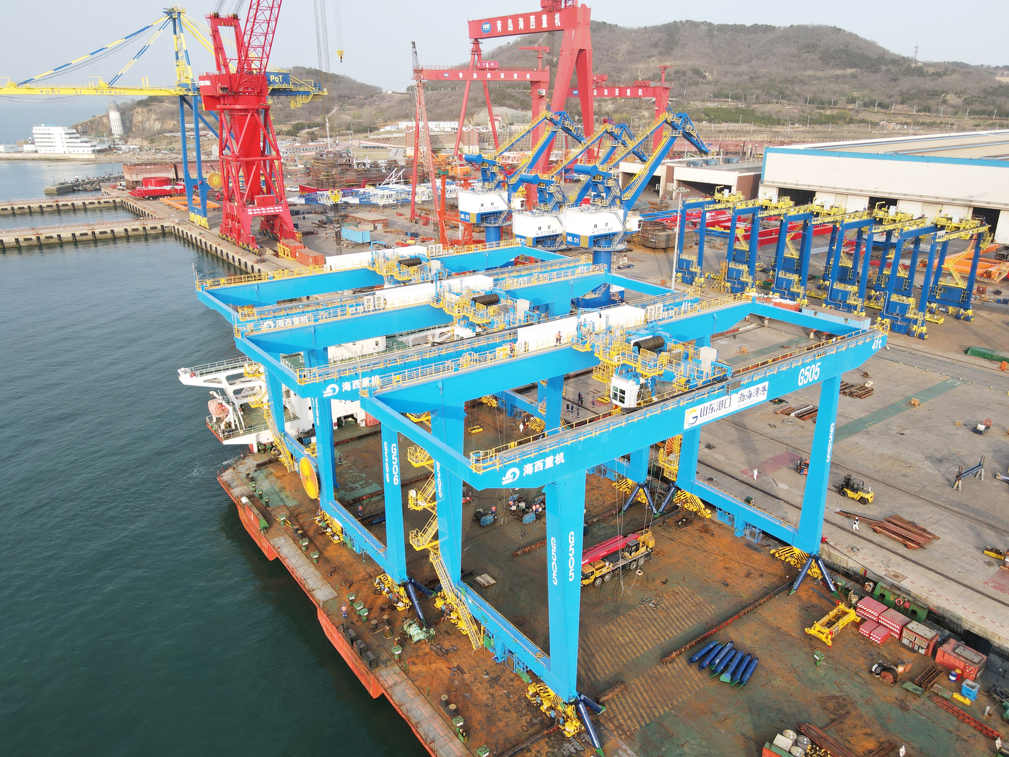 4月14日,中國船舶集團旗下武漢船機海西重機公司為山東港口濰坊港打造的3臺41t-37m自動化軌道吊順利發(fā)運。