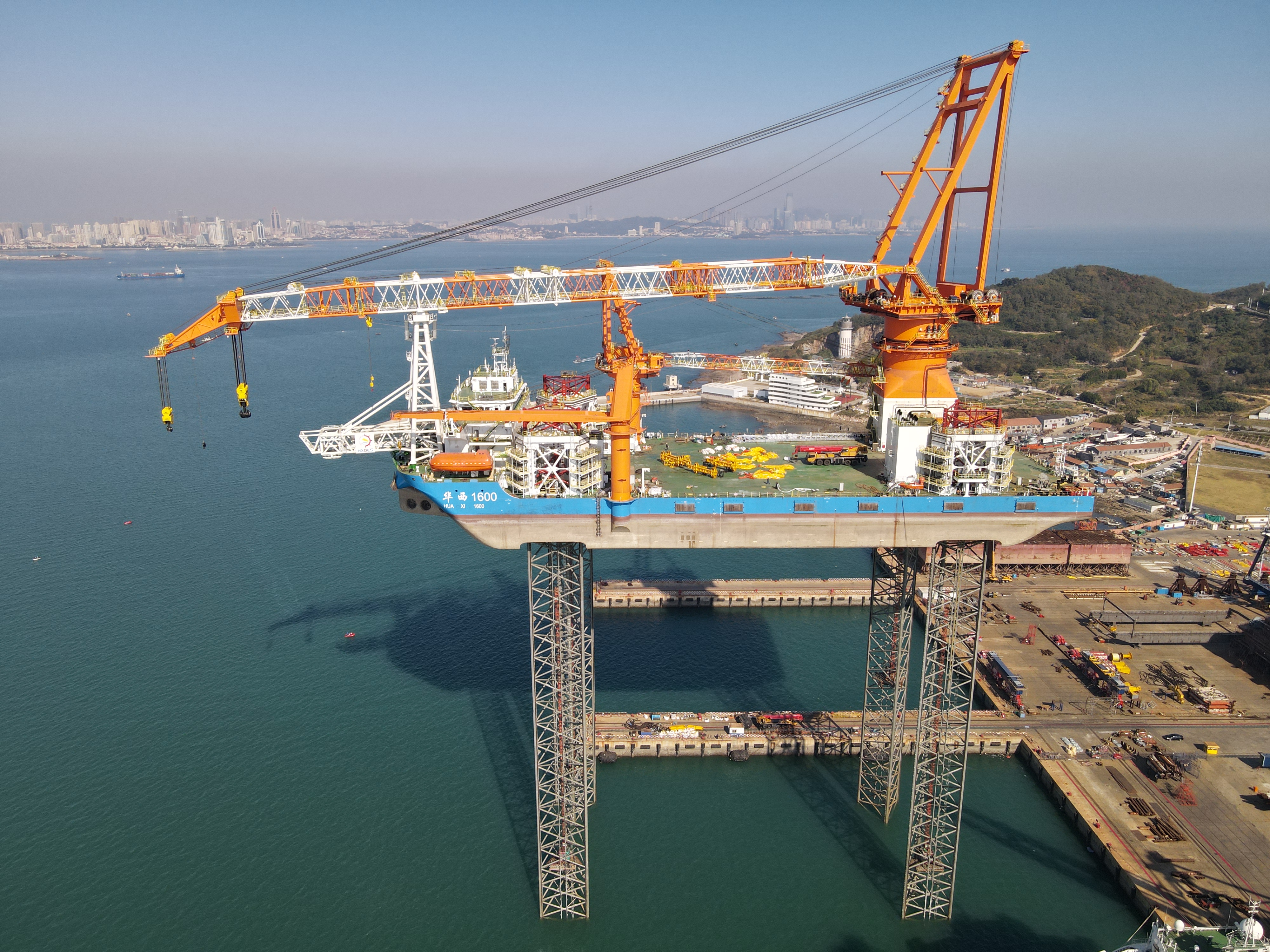 中國(guó)船舶武漢船機(jī)總包建造的我國(guó)最新一代 1600噸自升式海上風(fēng)電安裝平臺(tái)成功交付