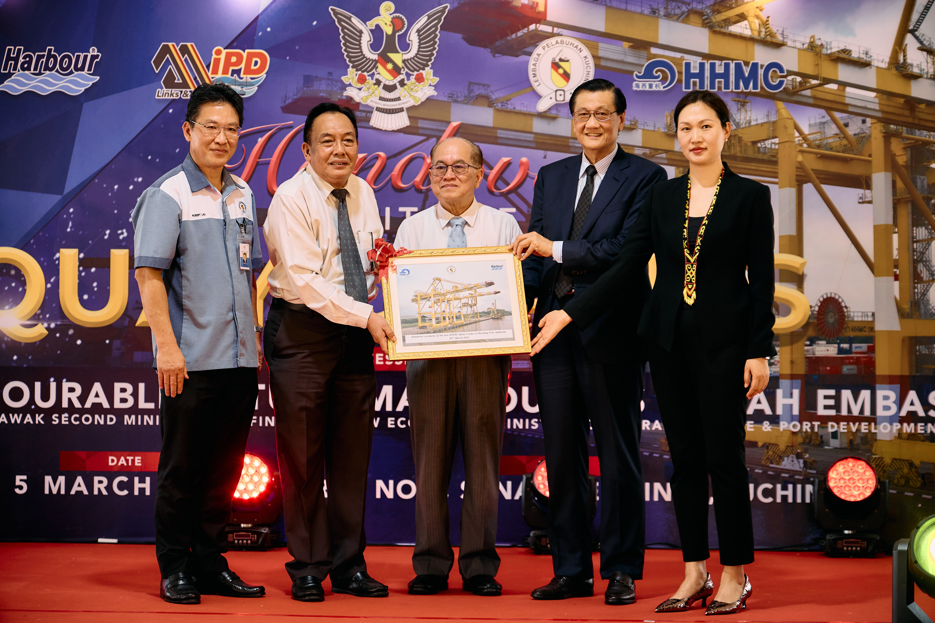 交機(jī)儀式上,馬來西亞砂拉越州副總理兼基礎(chǔ)建設(shè)與港口發(fā)展部部長Amar Douglas Uggah Embas、古晉港港務(wù)局主席Awang Bemee Bin Hj.Pengiran Ali Basah、Harbor Link集團(tuán)董事長Francis Yong Piaw Soon蒞臨現(xiàn)場并分別致辭,各方強(qiáng)調(diào)了該項(xiàng)目對當(dāng)?shù)馗劭诎l(fā)展的重要經(jīng)濟(jì)意義與社會意義,同時(shí)對海西重機(jī)產(chǎn)品以及項(xiàng)目團(tuán)隊(duì)給予了充分肯定。隨后,各方在岸橋前進(jìn)行剪彩并合影留念。
