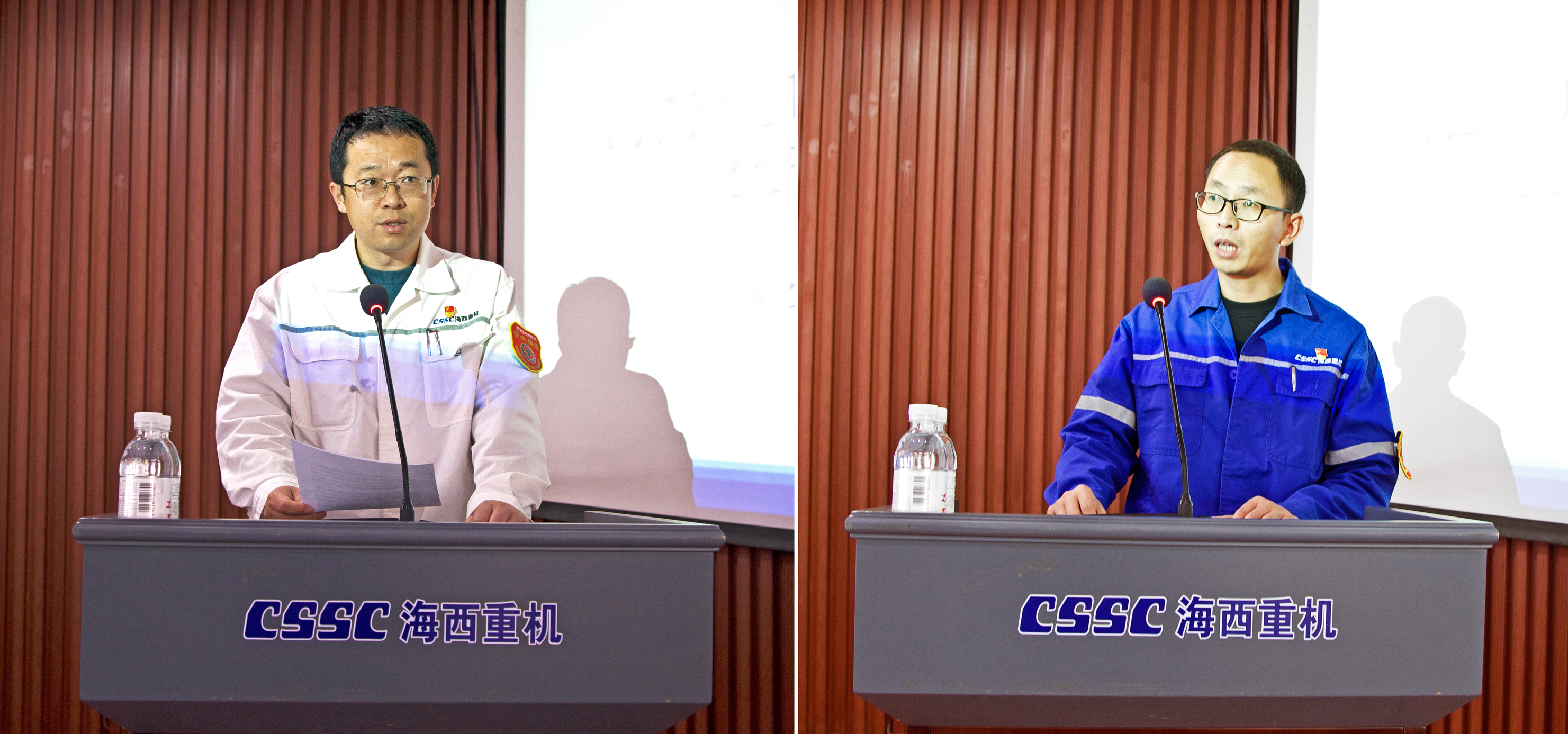 會上,海西重機海工部部長商圣偉代表生產(chǎn)部門進(jìn)行發(fā)言,分享了去年海工項目做的好的工作經(jīng)驗,同時對今年安全生產(chǎn)工作進(jìn)行表態(tài),將帶領(lǐng)海工項目團隊順利完成公司黨委交付的任務(wù),為公司高質(zhì)量發(fā)展交上一份滿意的答卷;項目管理部副部長柯誠同志分享了在濟寧港航龍拱港批量設(shè)備交機期間的工作體會,從“品牌、執(zhí)行和學(xué)習(xí)”三個方面講述了龍拱港干部職工迎難而上、頑強拼博,埋頭苦干、善干巧干、敢于攻堅克難的工作作風(fēng)。