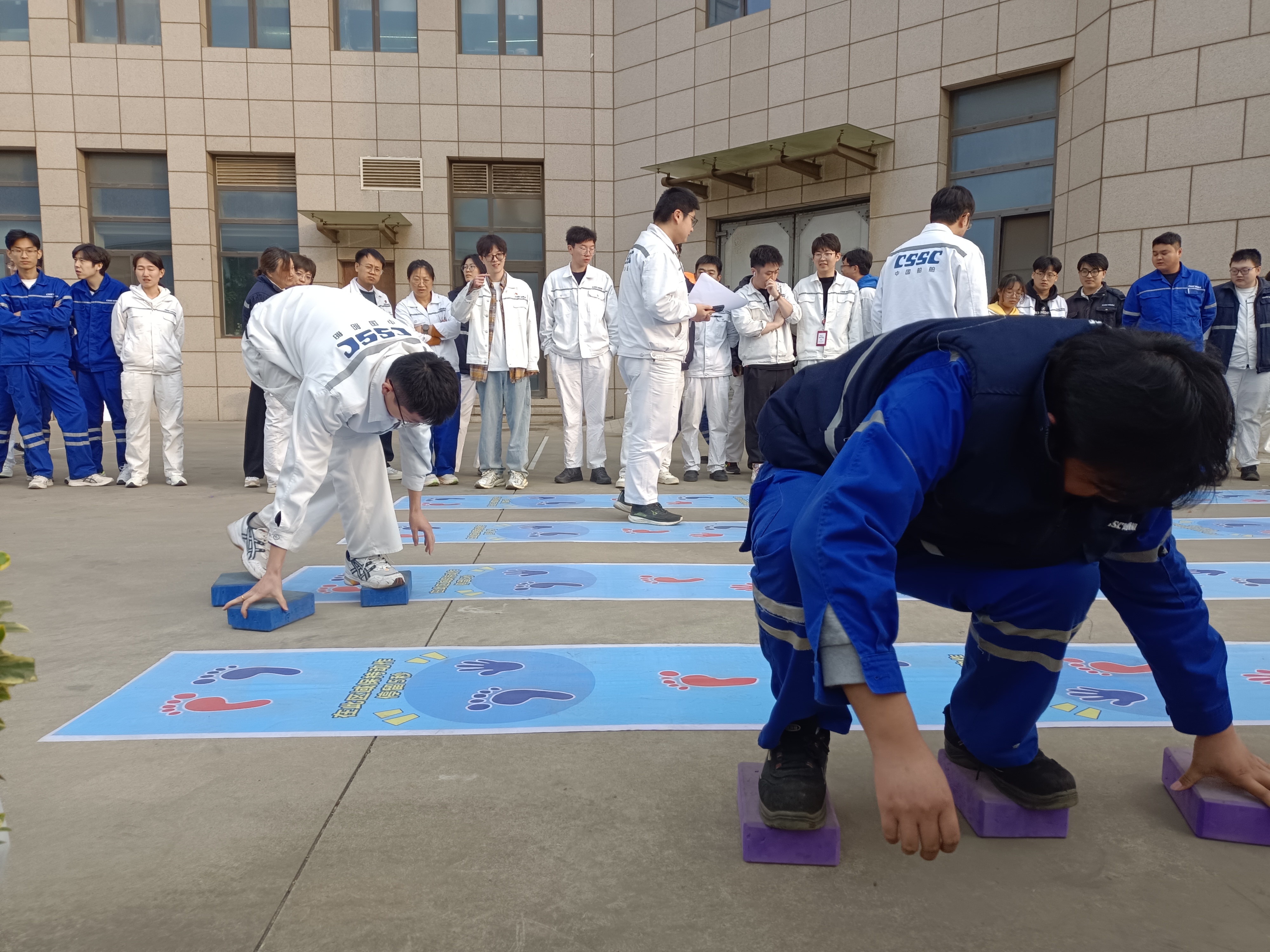備受矚目的“巨人腳步”項目中,港口機械工程所的隊伍以口號統(tǒng)一步伐,如“鋼鐵巨人”般穩(wěn)步?jīng)_向終點,展現(xiàn)了驚人的默契?!凹w跳長繩”更是高潮迭起,跳繩隊員的靈活身姿與搖繩者的精準節(jié)奏相得益彰,最后品質管理部以3分鐘完成102次的佳績摘得單項冠軍。技術中心分會的謝士嬌在“摸石過河”中表現(xiàn)搶眼,她巧妙鋪磚、輕盈跨步,為團隊節(jié)省關鍵時間。“我們女同事可是‘戰(zhàn)術擔當’!”她賽后笑稱。