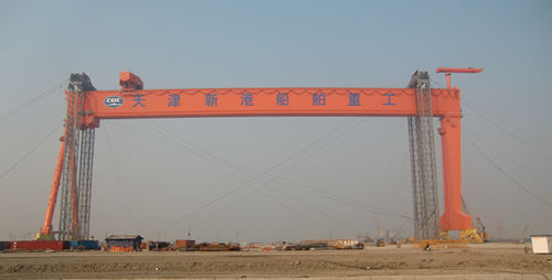 青島海西重機(jī)有限責(zé)任公司總承制的天津新港船舶重工有限責(zé)任公司臨港造修船基地首臺600噸×207米龍門吊,9月23日上午開始預(yù)提升,9月26日下午13點(diǎn)36分開始正式提升,于10月7日下午16點(diǎn)53分順利安裝到位,創(chuàng)下了國內(nèi)同類型龍門吊提升時(shí)間最短紀(jì)錄。