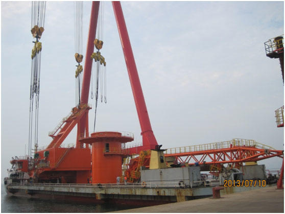 G127項目制作后期,遇到連續(xù)陰雨天氣,對構(gòu)件涂裝工作造成了極大影響,經(jīng)過各部門的團結(jié)協(xié)作,使該項目在預(yù)定的時間完成了裝船工作。該項目的成功制作,為我司設(shè)計與制作大噸位的固定式回轉(zhuǎn)起重機積累了寶貴的經(jīng)驗,同時也成功驗證了我司可以合理利用1600T龍門吊和突堤碼頭港池進(jìn)行有效配合,直接進(jìn)行港機大件甚至是整機的吊裝上船作業(yè)。