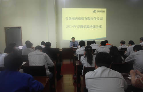 5月22日,海西重機邀請黃島區(qū)人民檢察院對口部門,在海西重機舉辦了2014年反腐倡廉培訓(xùn)講座,公司黨委書記孫總參加了培訓(xùn)講座。