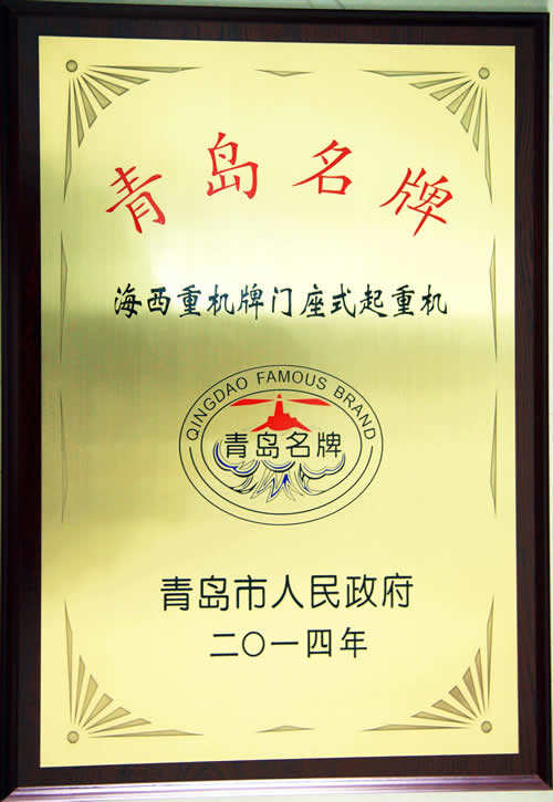 近日,海西重機(jī)門座式起重機(jī)被青島市人民政府授予“青島名牌”榮譽(yù)稱號,并頒發(fā)證書。